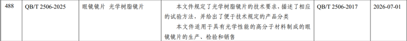 ● QB/T 2506—2025 《眼镜镜片 光学树脂镜片》